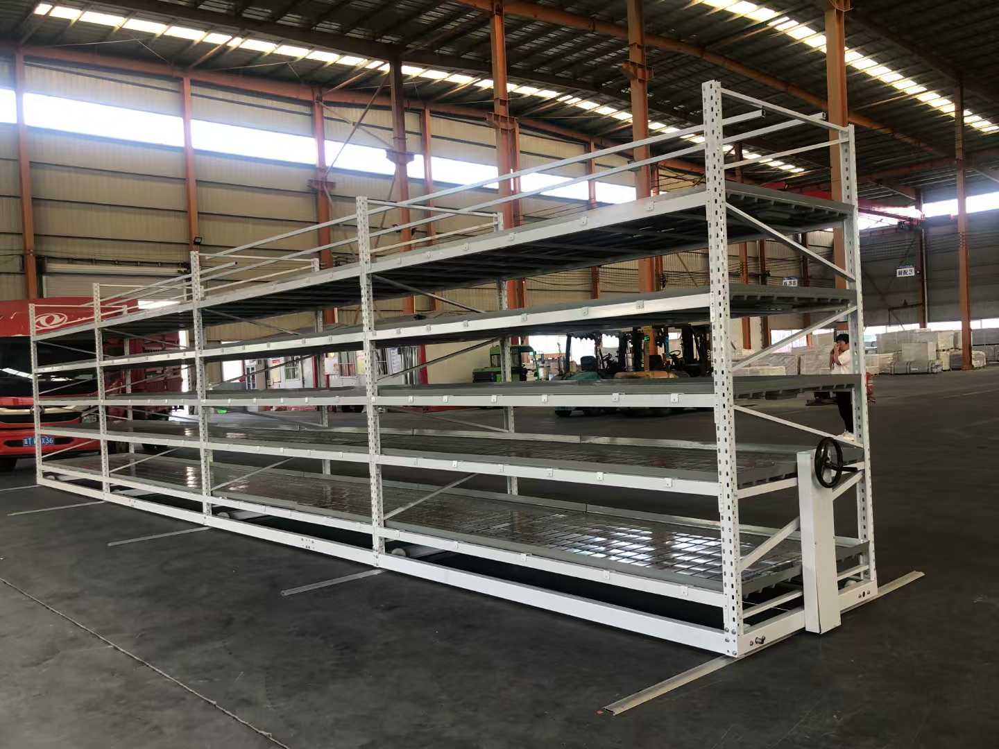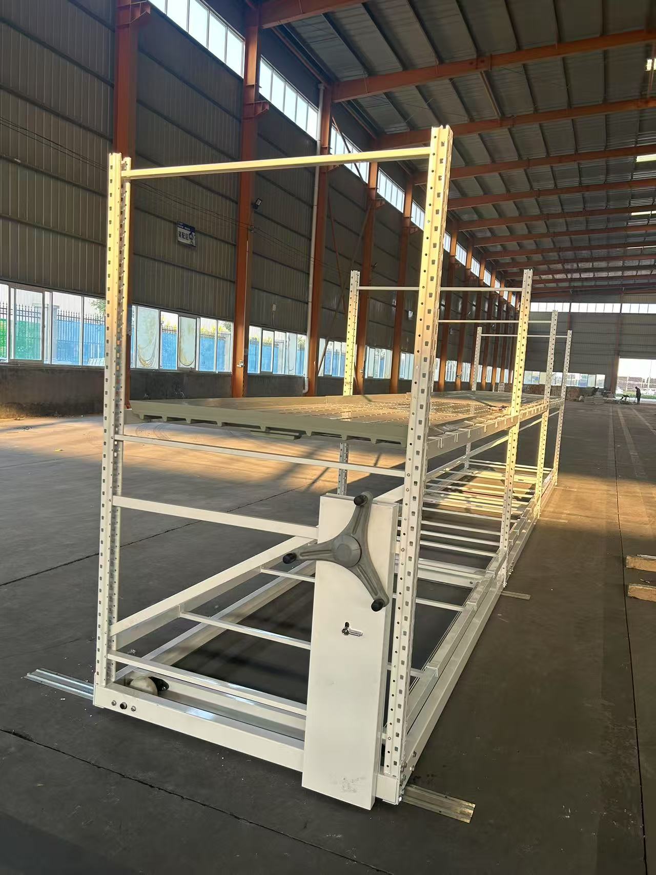 整體易管理也是一大亮點(diǎn),配備的鎖止功能和防翻裝置,讓苗床在移動(dòng)和固定時(shí)都更加安全可靠,操作簡(jiǎn)便,即使是新手種植者也能快速上手。型材立柱可做成多層高度,不受層距限制,能夠根據(jù)不同植物的生長(zhǎng)高度和需求,靈活調(diào)整層間距,為植物創(chuàng)造適宜的生長(zhǎng)空間。軌道預(yù)埋處理方便推車操作,提高了使用的便捷性,讓種植過(guò)程中的搬運(yùn)和管理工作變得更加輕松高效。