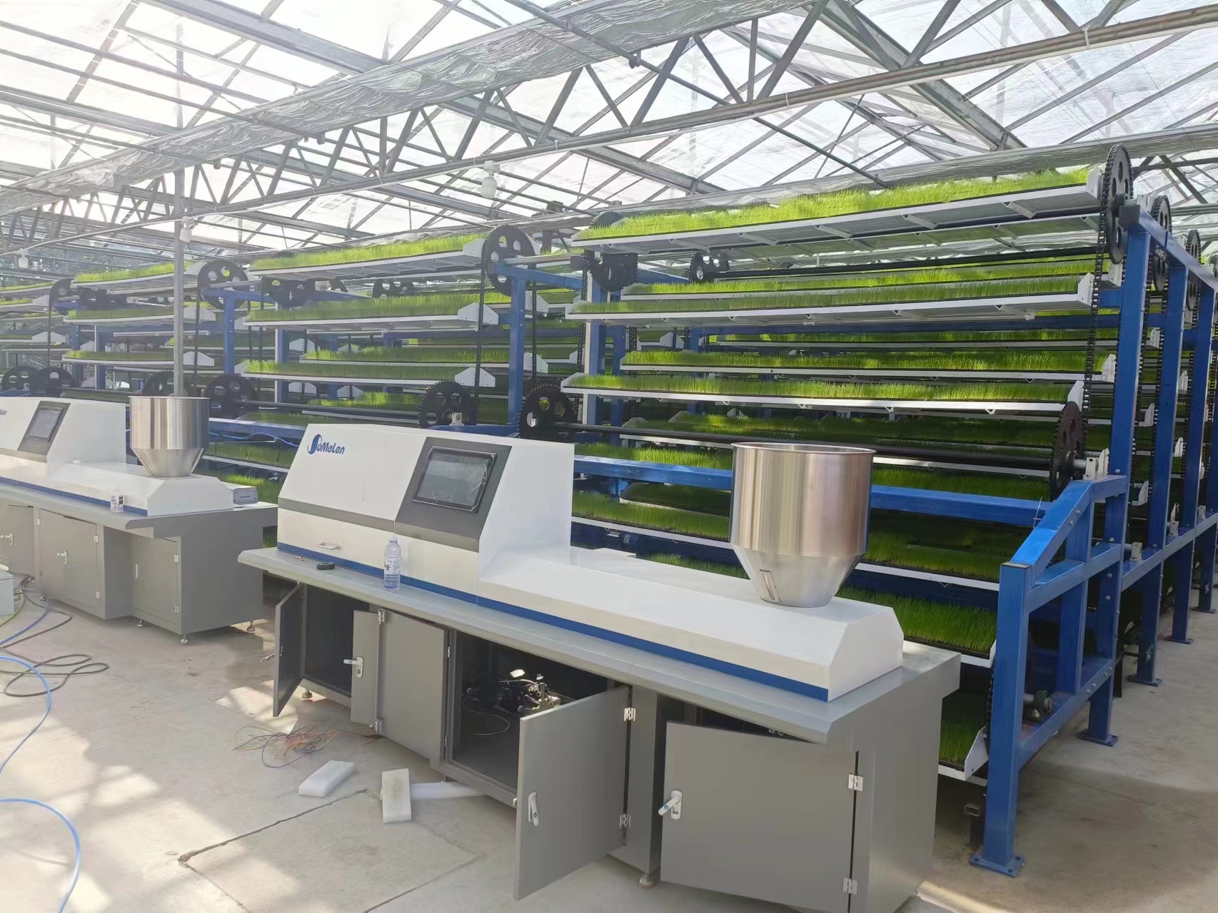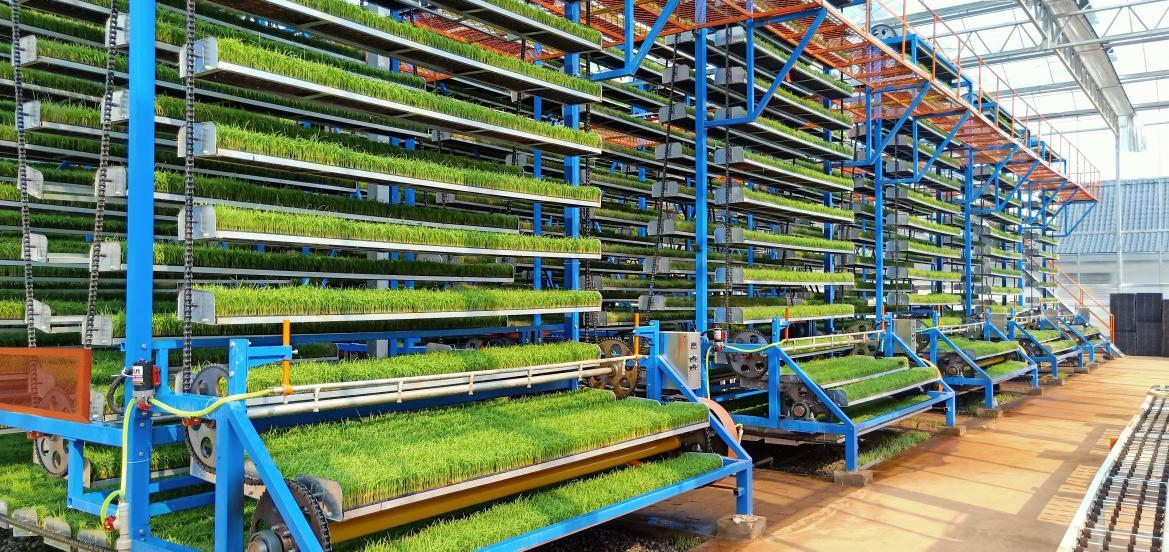 立體旋轉(zhuǎn)W型循環(huán)系統(tǒng)采用了獨(dú)特的多層“W”型或“摩天輪式”設(shè)計(jì),秧盤(pán)在齒輪驅(qū)動(dòng)下循環(huán)移動(dòng),確保每層秧苗都能均勻接受光照、溫濕度調(diào)控。這種設(shè)計(jì)使得空間利用率大幅提升,單位面積育苗量可提升3—8倍。例如,廣東江門(mén)某工廠占地僅1700平方米,卻可滿(mǎn)足1萬(wàn)畝稻田的用苗需求,充分展示了該系統(tǒng)的高效性。